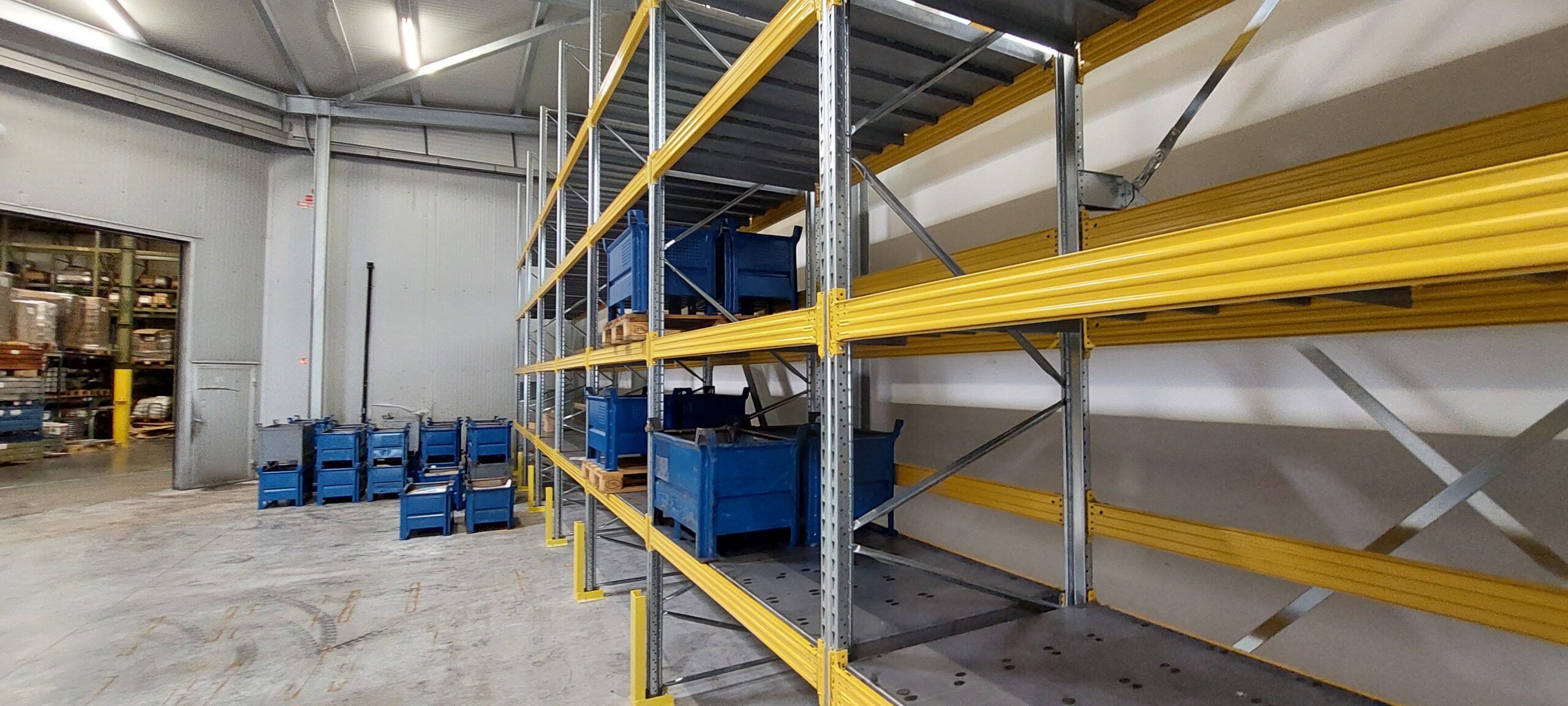 PALETNI REGALI predstavljajo najbolj razširjen način skladiščenja blaga. Primerni so tako za manjša skladišča, kot za potrebe velikih distribucijskih centrov. Ustrezajo vsem zahtevam modernega paletnega shranjevanja; od hitre montažne postavitve in morebitne prenastavitve, do stabilnosti in univerzalnosti skladiščenega blaga do 15 ton.