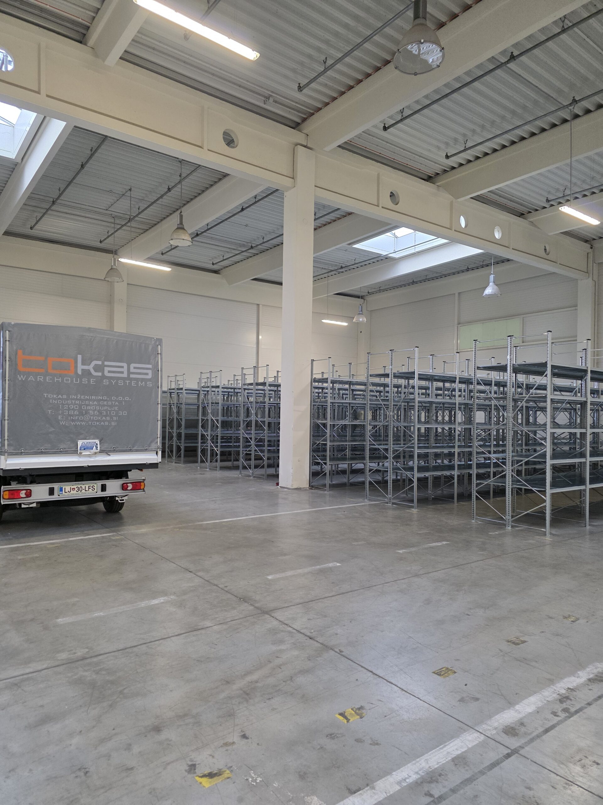 - Širina 530 x Dolžina 3085mm(2x1510polica + 65) x Višina 2500 + 7polic (530x1510 nosilnost do 300kg)